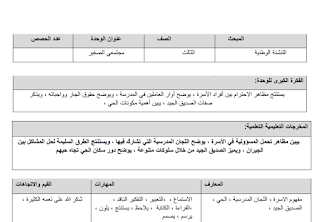 تحضير الوحدة الرابعة في التنشئة الوطنية والاجتماعية للصف الثالث الفصل الثاني
