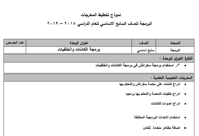 تحضير برمجة الوحدة الثانية للصف السابع الفصل الثاني