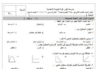 اختبار نصف الفصل الثاني في العلوم والحياة للصف السابع الفصل الثاني