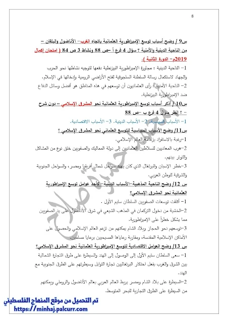 ملخص الوحدة الثالثة والرابعة للتاريخ توجيهي بعد الحذف