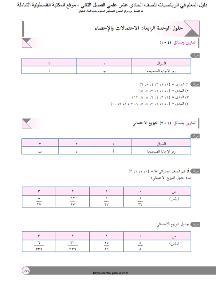 يحتوي هذا الملف على حلول تمارين ومسائل الرياضيات للصف الحادي عشر علمي الفصل الدراسي الثاني "الفترة الثالثة والرابعة" وفقا للمنهاج الفلسطيني الجديد