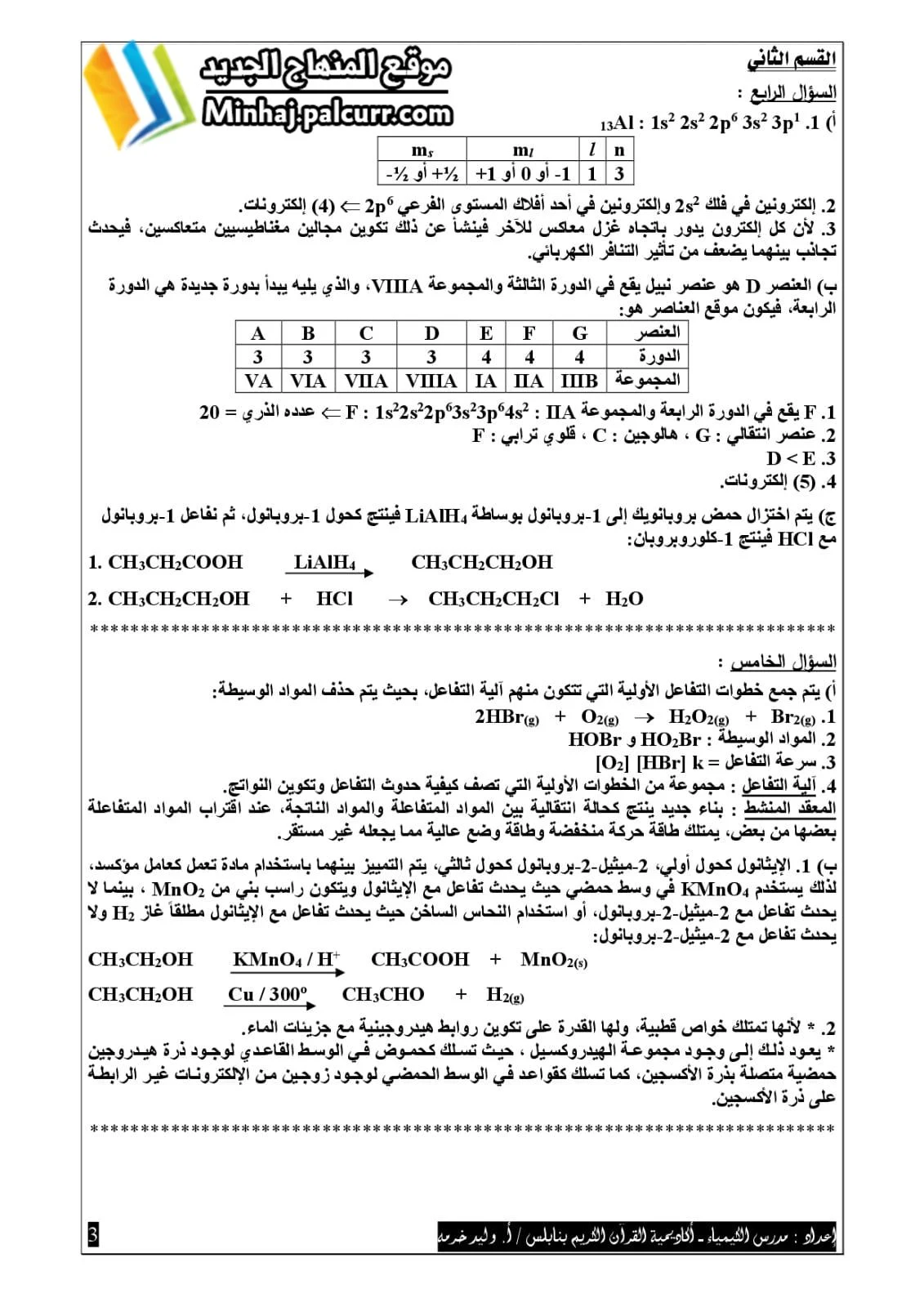 بالإضافة إلى اجابة امتحان الكيمياء والحلول النموذجية من أجل الإطلاع عليها والاستفادة منها في السنوات القادمة.