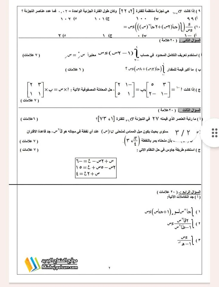 مرفق لكم امتحان الرياضيات التجريبي للفرع العلمي لطلاب الثانوية العامة في فلسطين، امتحان الجلسة الثانية في مديرية رام الله مع الإجابات النموذجية.