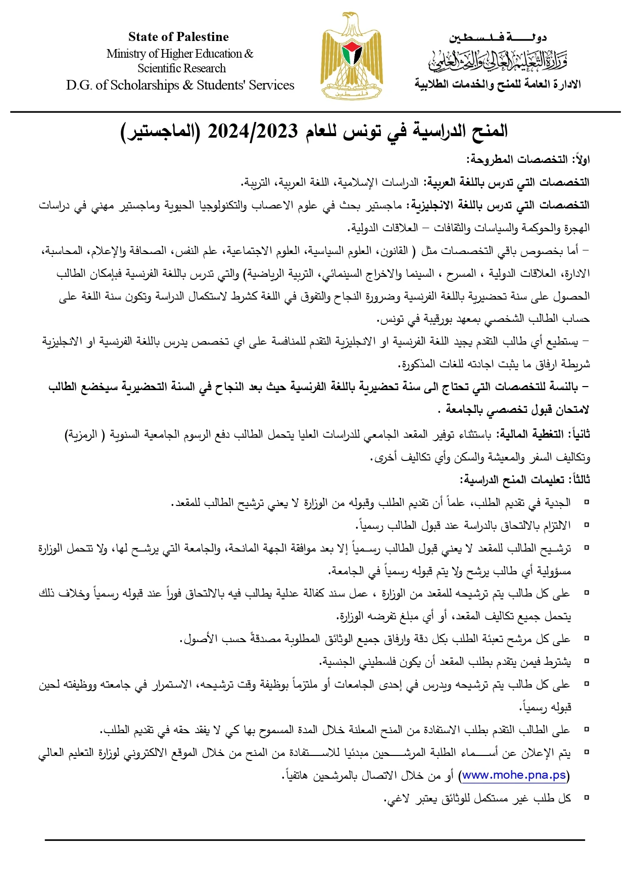 الايميل : info.scholar@mohe.pna.ps