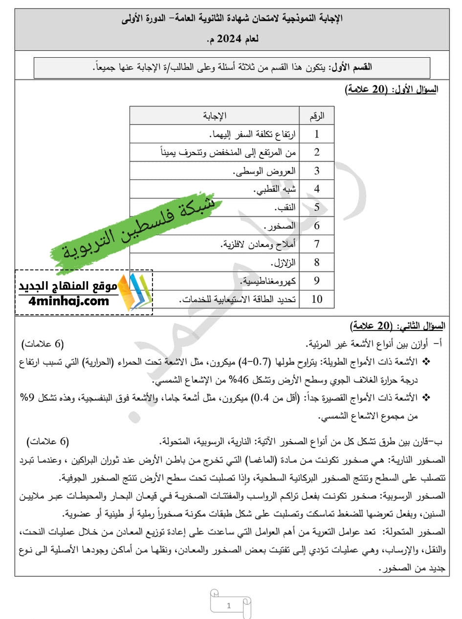 من خلال هذا الموضوع يمكنكم الوصول الى اجابات امتحان الجغرافيا للثانوية العامة في فلسطين.